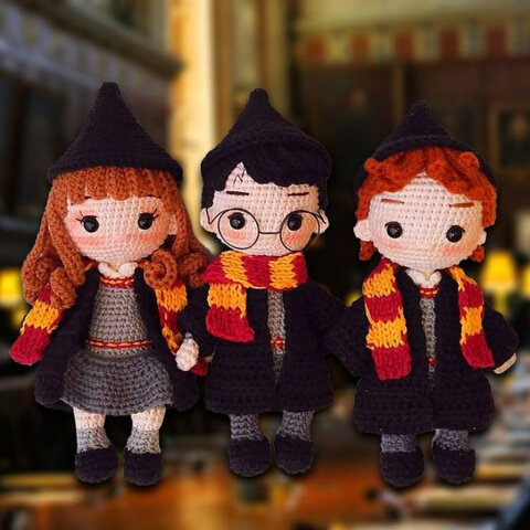 Hermione- Harry Potter- Rony amigurumi crochê