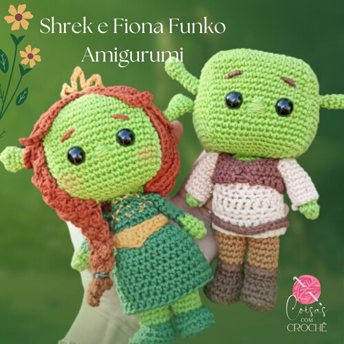 Bonecos Fiona e Shrek Amigurumi